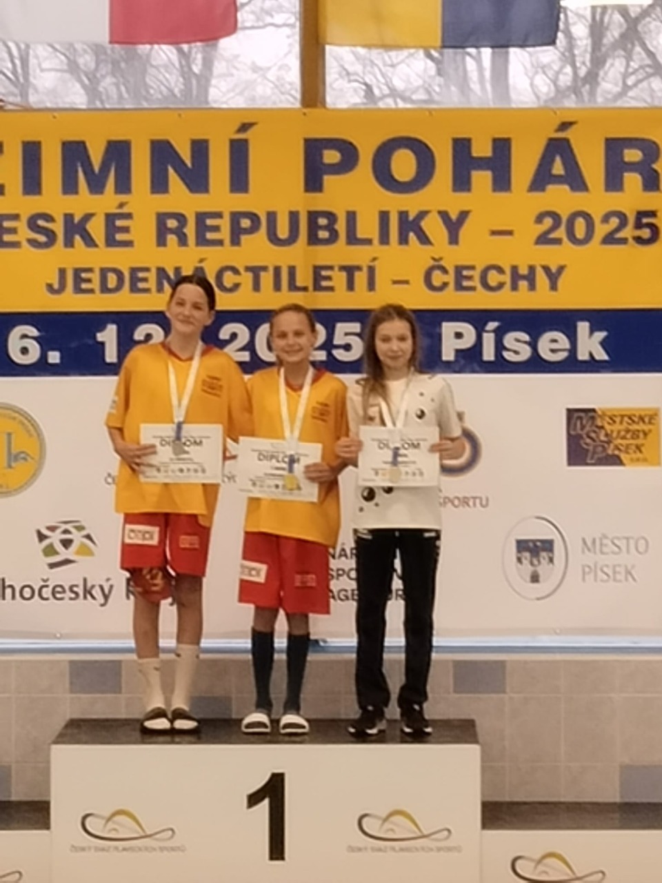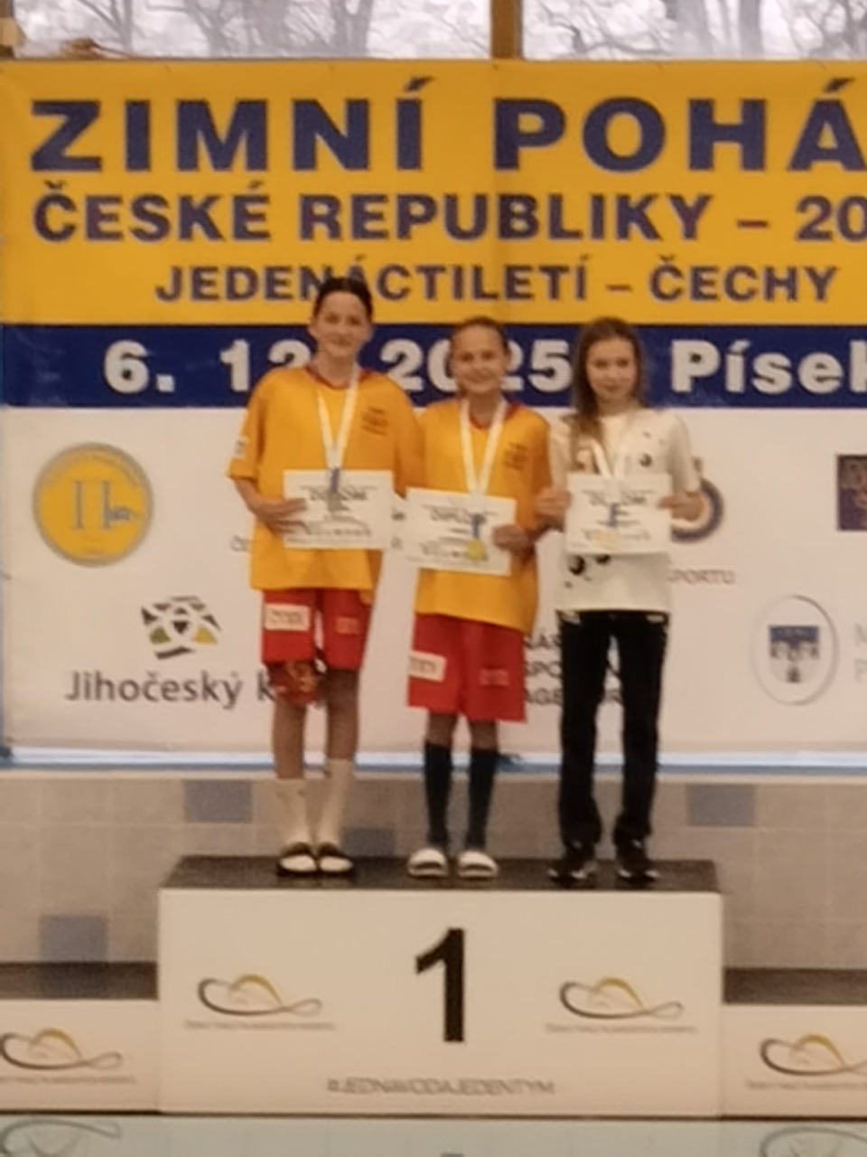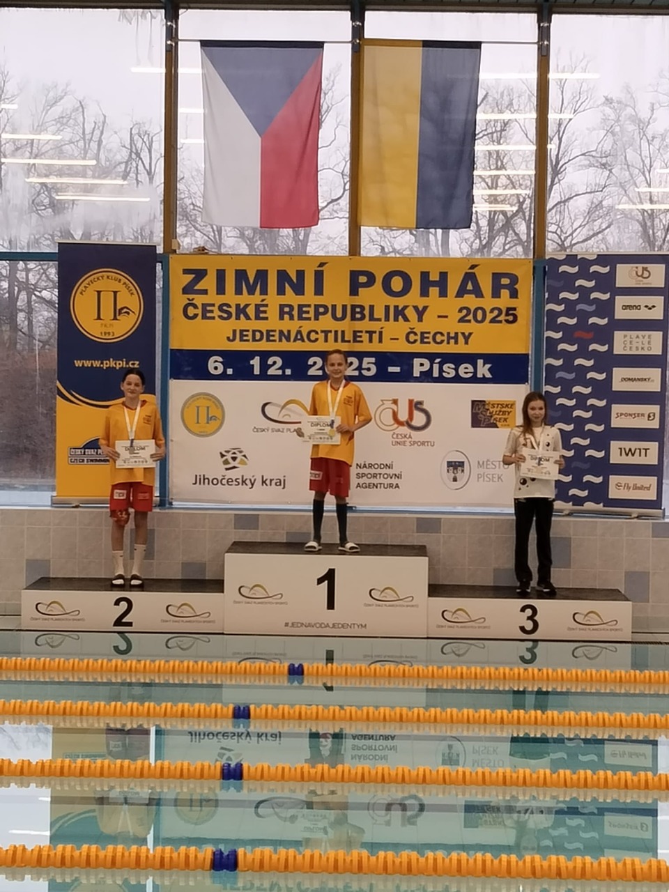 Cenný kov přidala do sbírky i Sofie Kubálková (2012) , která si vylepšila osobní maximum na 50 m motýlek a dohmátla si pro bronz. Benjamínek na zkušené Speciální zmínku si zaslouží náš nejmladší účastník, devítiletý Jan Kubálek (2017). Ten sice zatím místo medailí loví hlavně zkušenosti, ale mezi staršími „mazáky“ se rozhodně neztratil. Bojoval statečně a ukázal, že nám v bazénu roste další naděje, o které ještě určitě uslyšíme!Všem sedmi plavcům děkujeme za vzornou reprezentaci a gratulujeme k parádnímu vstupu do roku 2026!